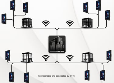 Offices often have screens across lobbies, meeting rooms, and different floors. Netvio AVoIP Control makes them easy to manage from one device.